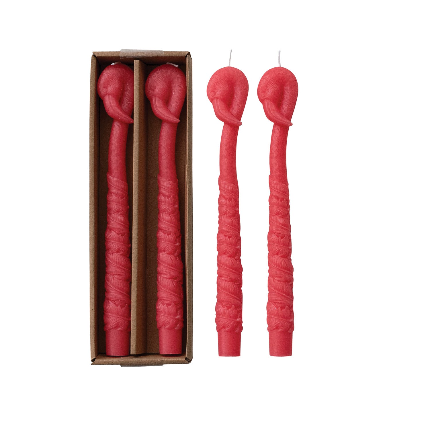 Unscented Flamingo Shaped Taper Candles in Box, Fuchsia Color, Set of 2