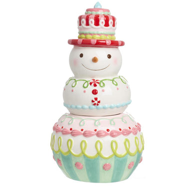 Cheerful Snowman Ceramic Candy Jar, 13.5"