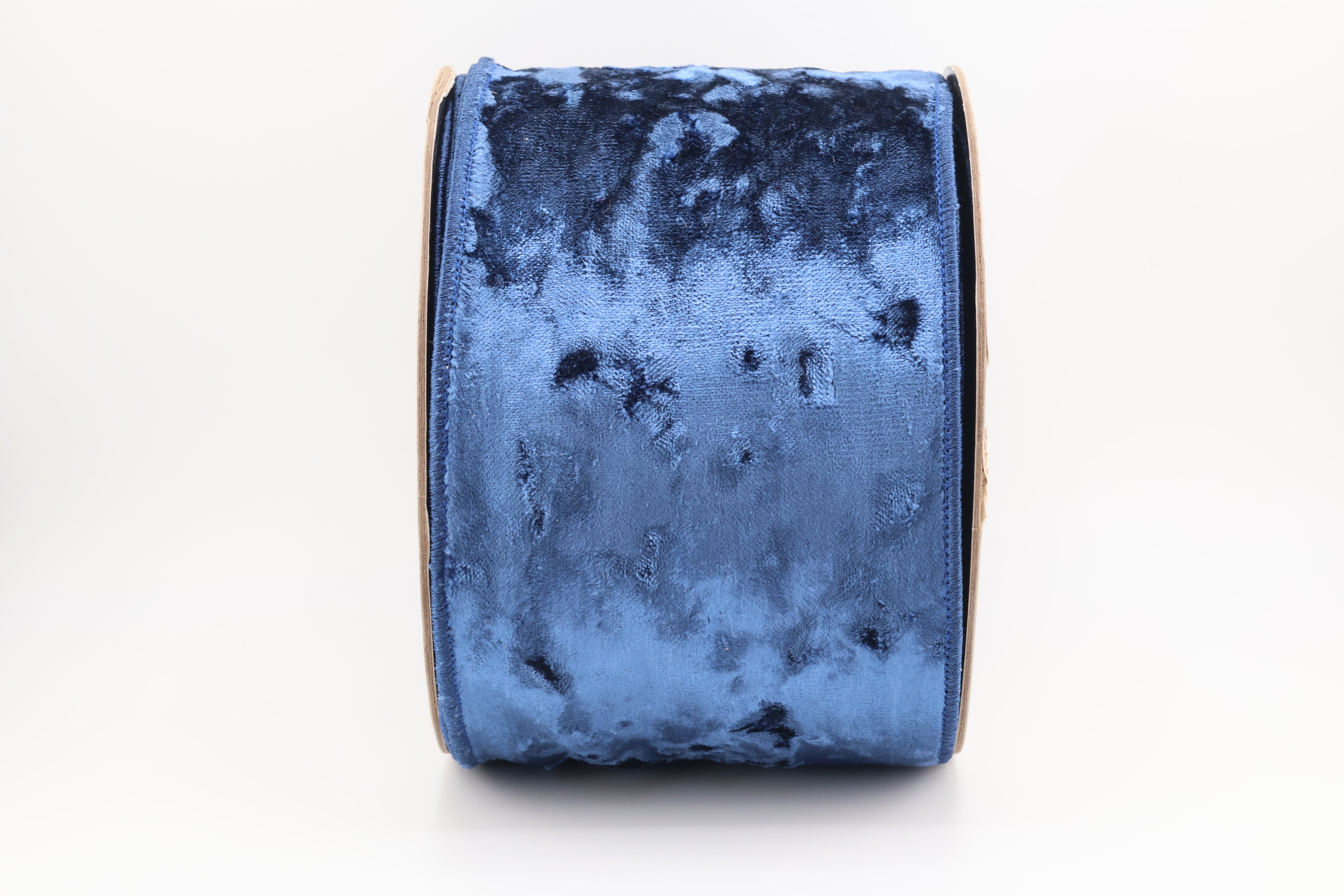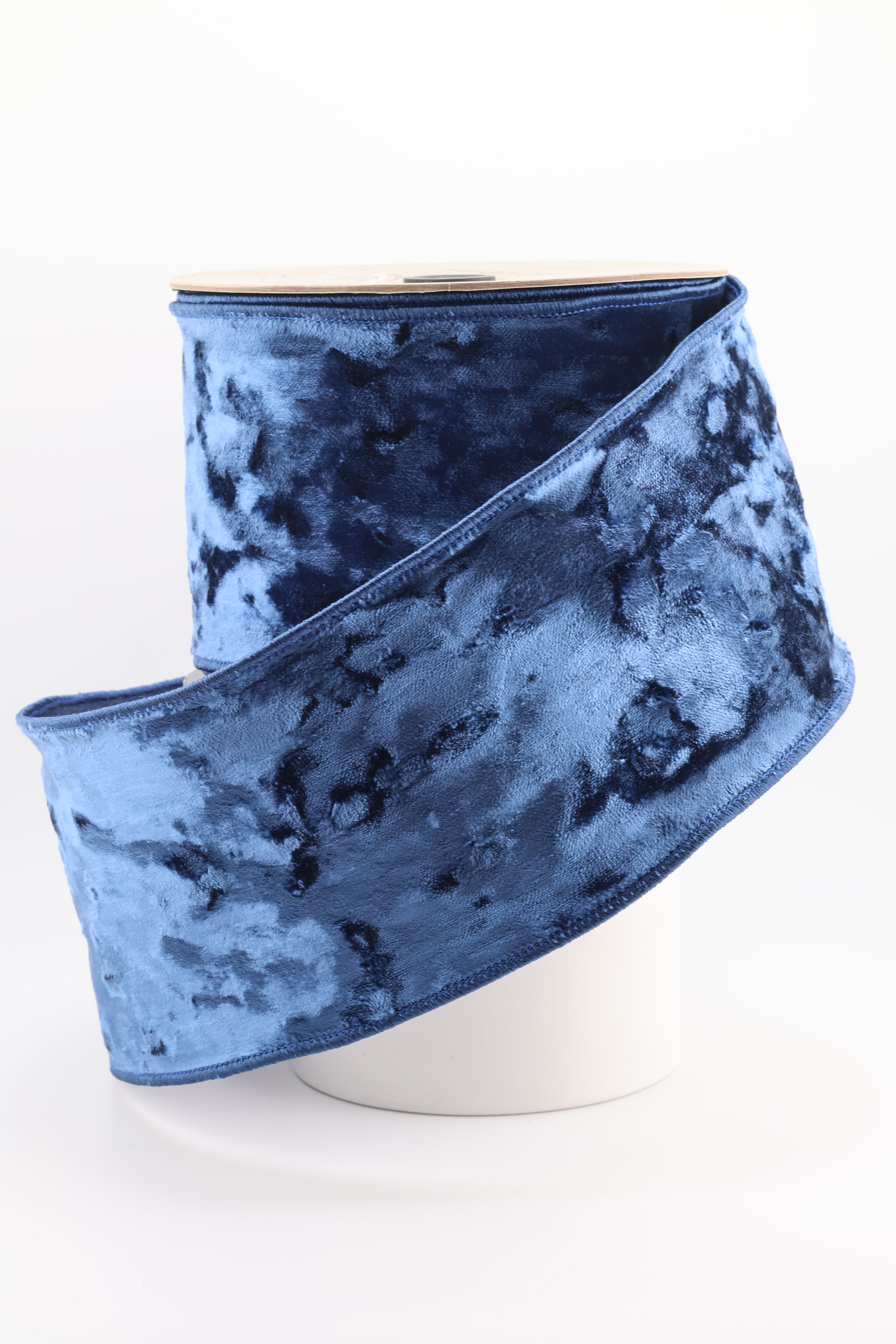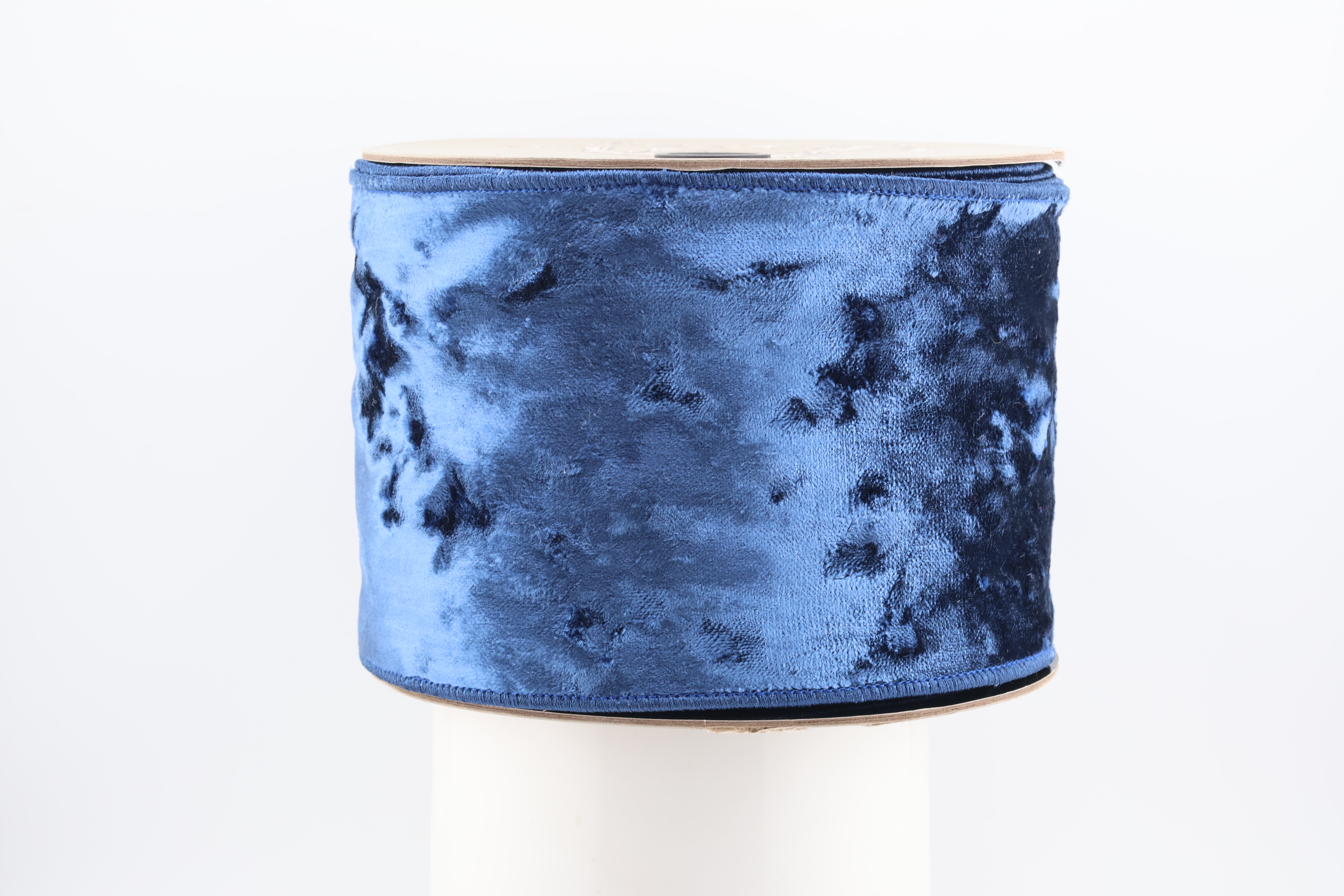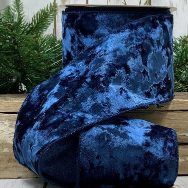 Elevate your holiday decor with the rich elegance of Crushed Sapphire. This luxurious ribbon features a plush, crushed velvet texture in a deep navy hue that catches the light beautifully for a dramatic effect. Whether you're wrapping gifts or creating show-stopping bows, this wired-edge ribbon brings sophistication and depth to any design.
