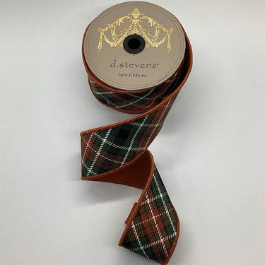 Add cozy charm and classic style to your holiday décor with this brown tartan plaid ribbon. Featuring a timeless pattern in deep green, brown, and white tones, this ribbon is cut on the bias for a unique diagonal plaid effect and is backed with rich brown dupion fabric for added texture and structure. The wired edges make it easy to shape, ensuring your bows and loops hold perfectly.