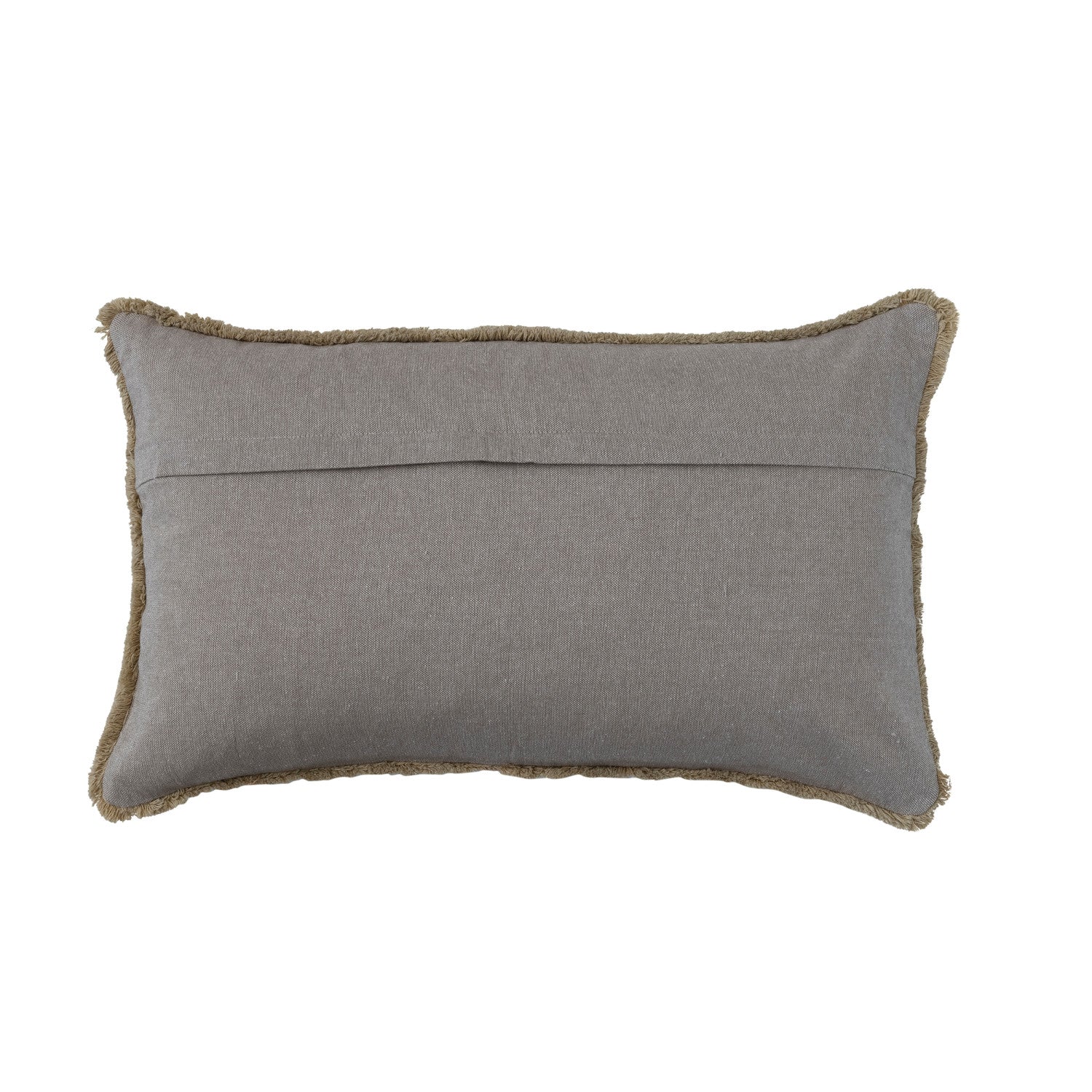Cotton Slub Lumbar Pillow with Embroidery & Fringe