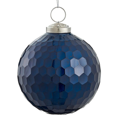 4" Blue Faceted Honeycomb Glass Ball Ornament