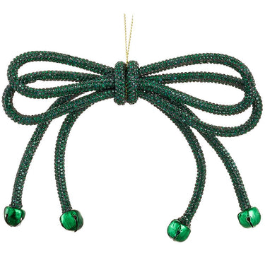 5.5" Green Sparkle Bow Ornament w/ Bells