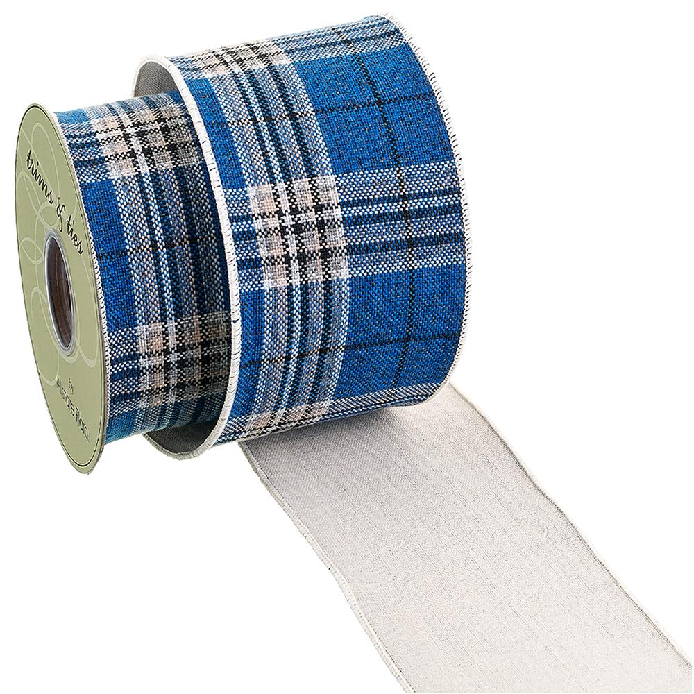 Blue Highland Plaid Wired Ribbon – 4" x 10yd
