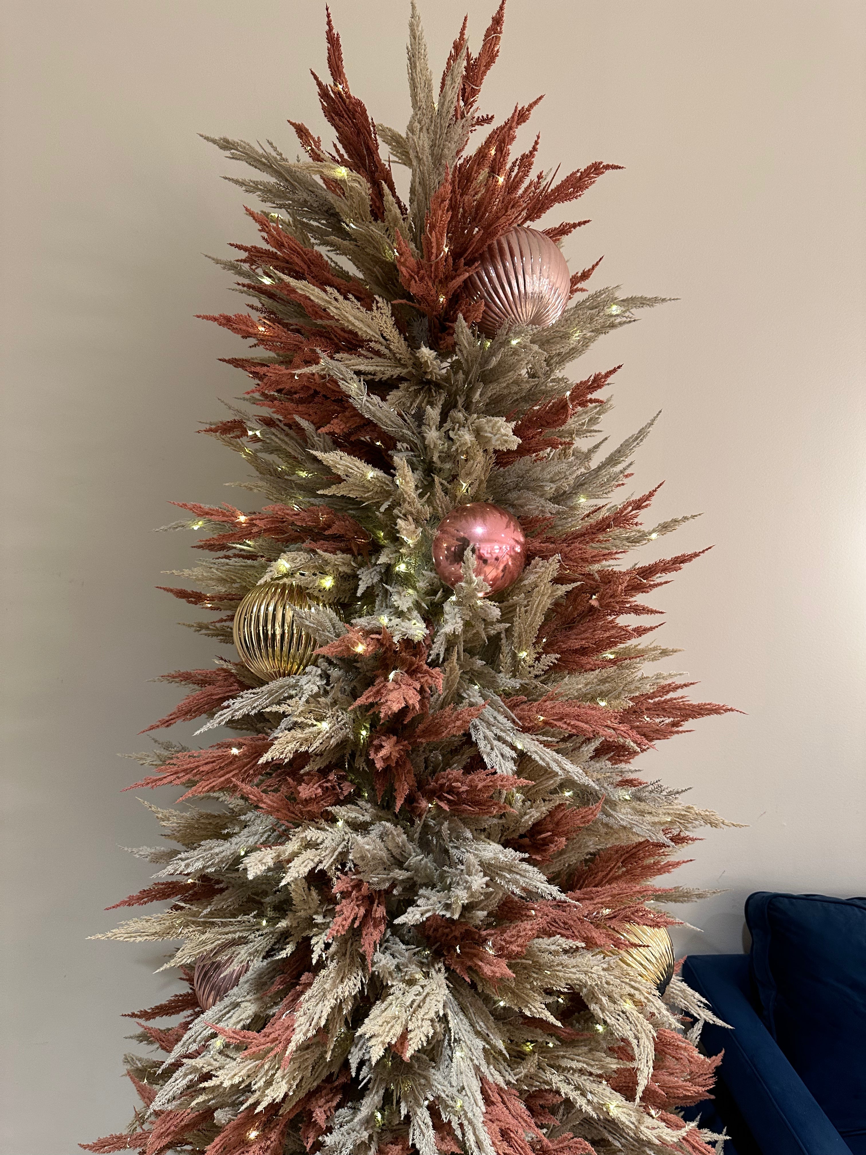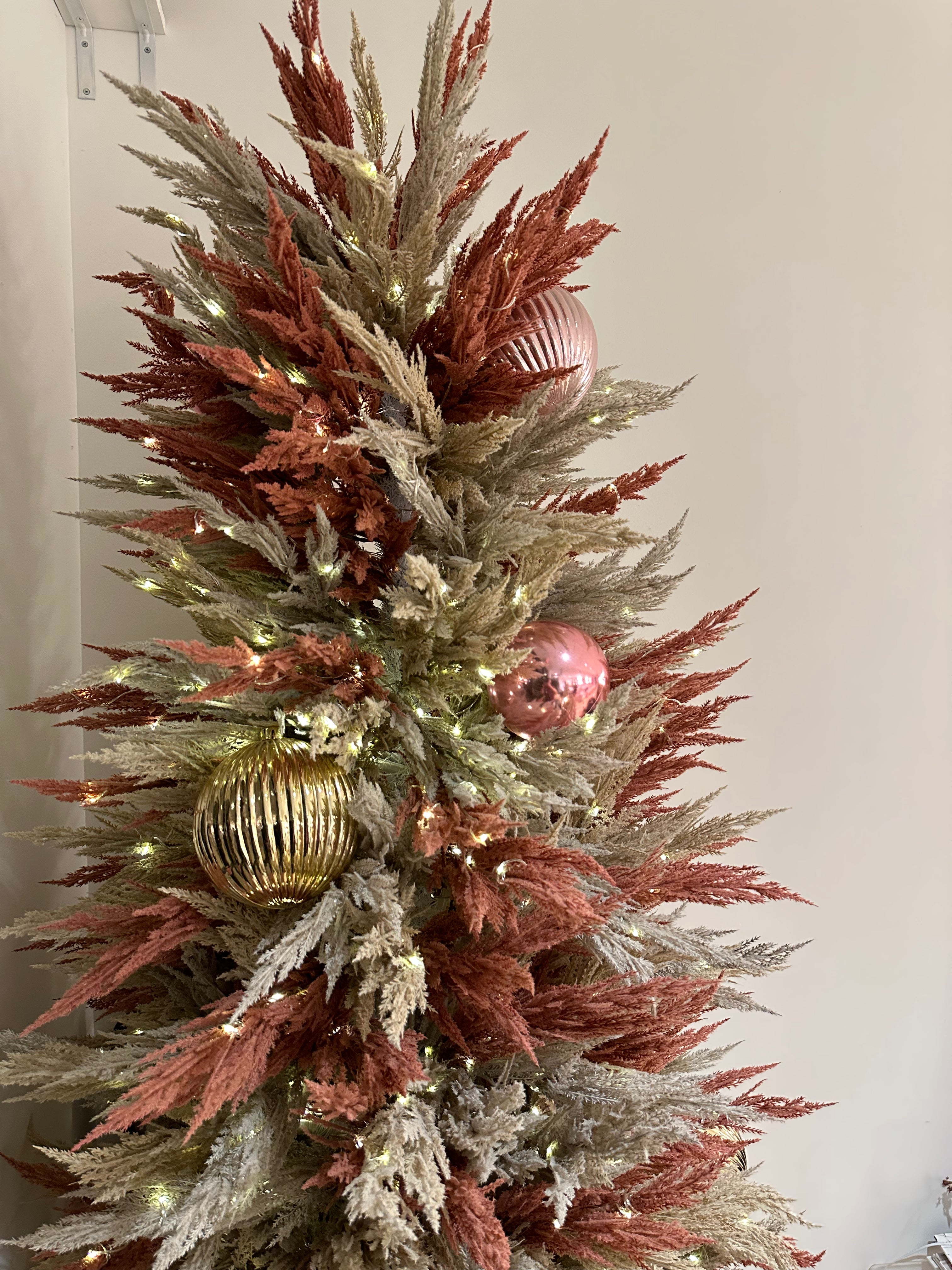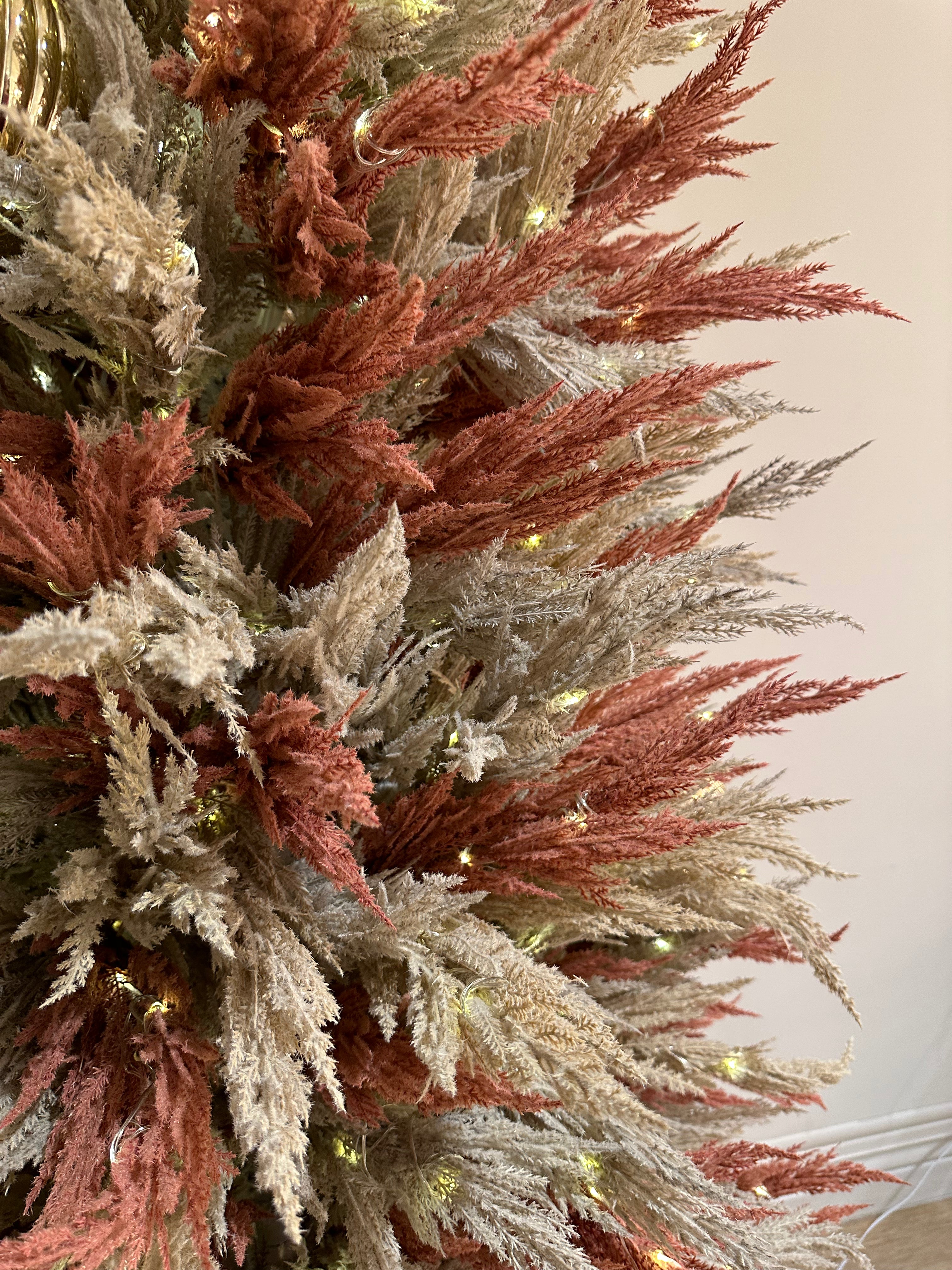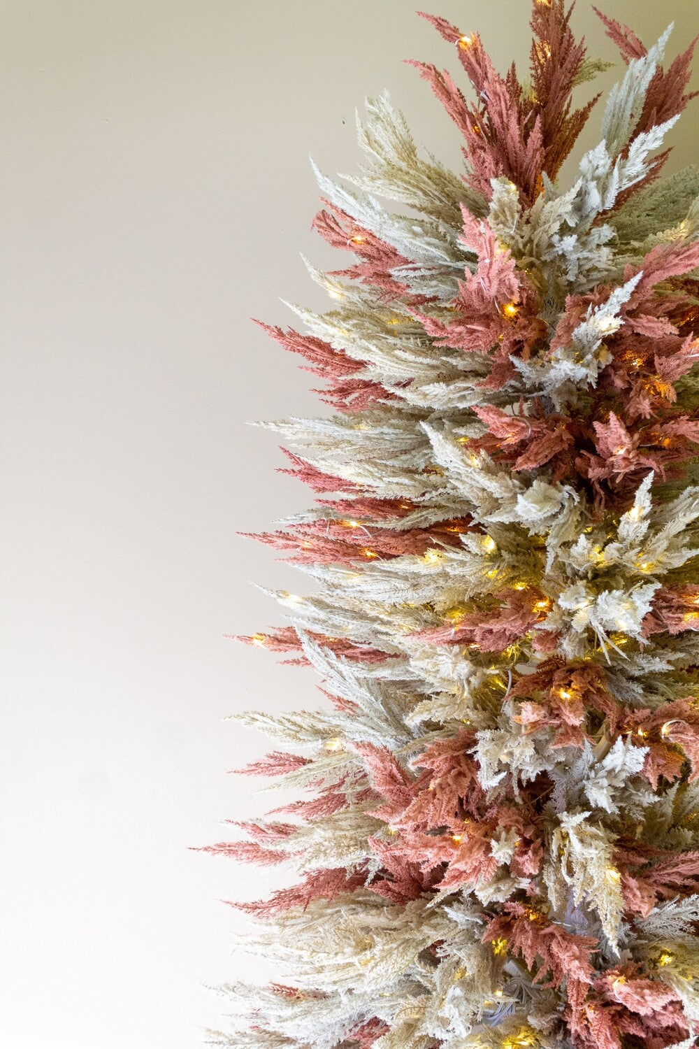 Elevate your holiday celebrations with the enchanting beauty of the Cream & Pink Pampas Grass Artificial Christmas Tree. Its unique design and warm lighting create a cozy and festive atmosphere, perfect for making memories with loved ones.