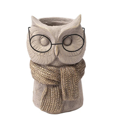 Bring wisdom and whimsy to your decor with the Booksmart Owl. Crafted with intricate feather detailing and finished in a warm neutral tone, this charming owl wears a cozy cable-knit textured sweater and a pair of movable round glasses. Perfect as a planter or decorative accent, it’s a delightful mix of clever and cute.