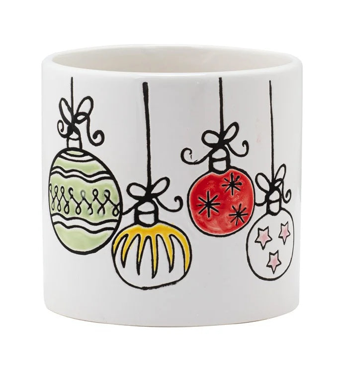 Add a cheerful holiday touch to your space with the Christmas Ornament Planter. Featuring a clean white ceramic base adorned with hand-painted colorful hanging ornaments, this planter is perfect for displaying seasonal greenery, florals, or festive candy. The simple yet whimsical design makes it an easy fit for any holiday décor style.