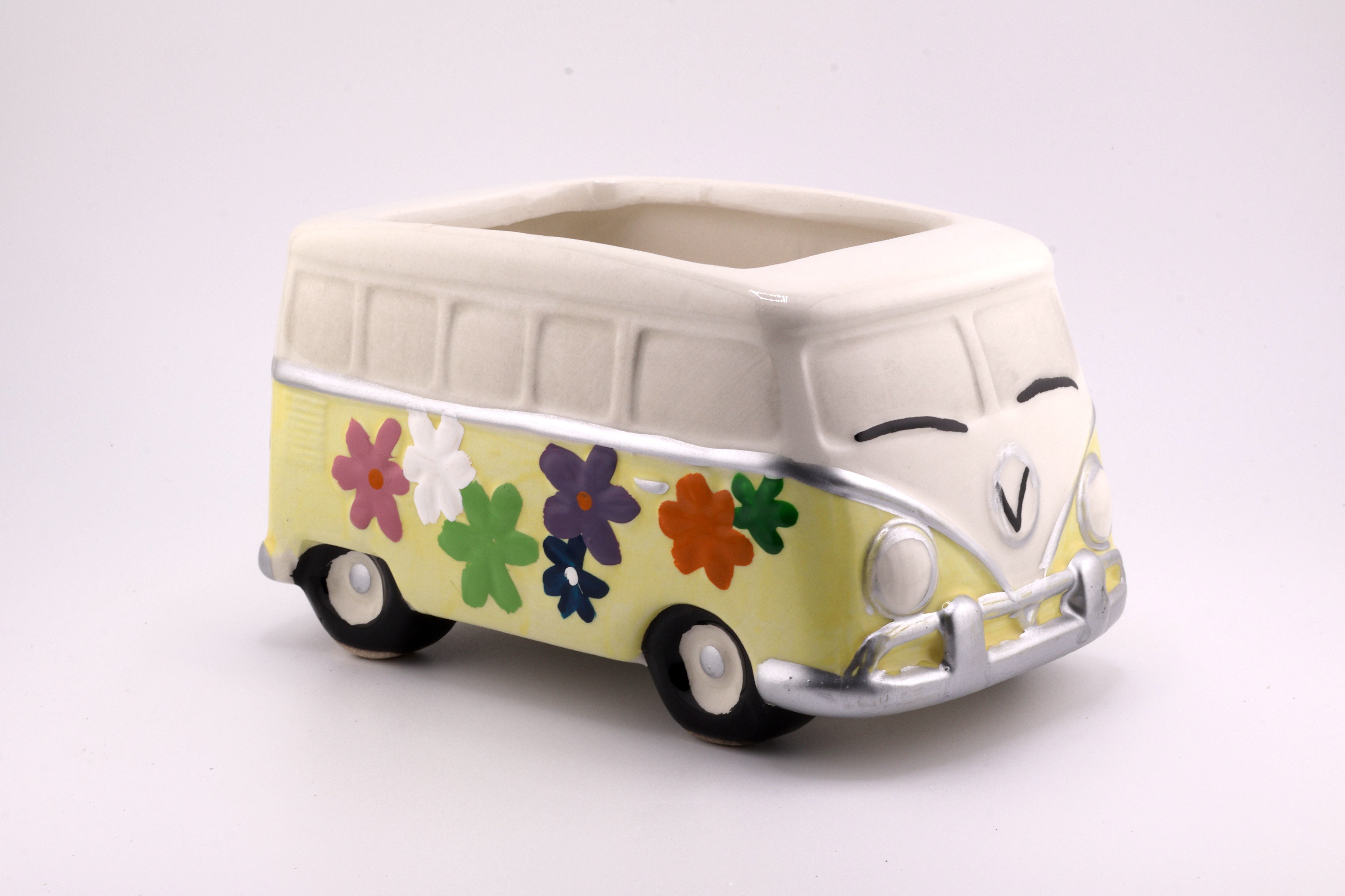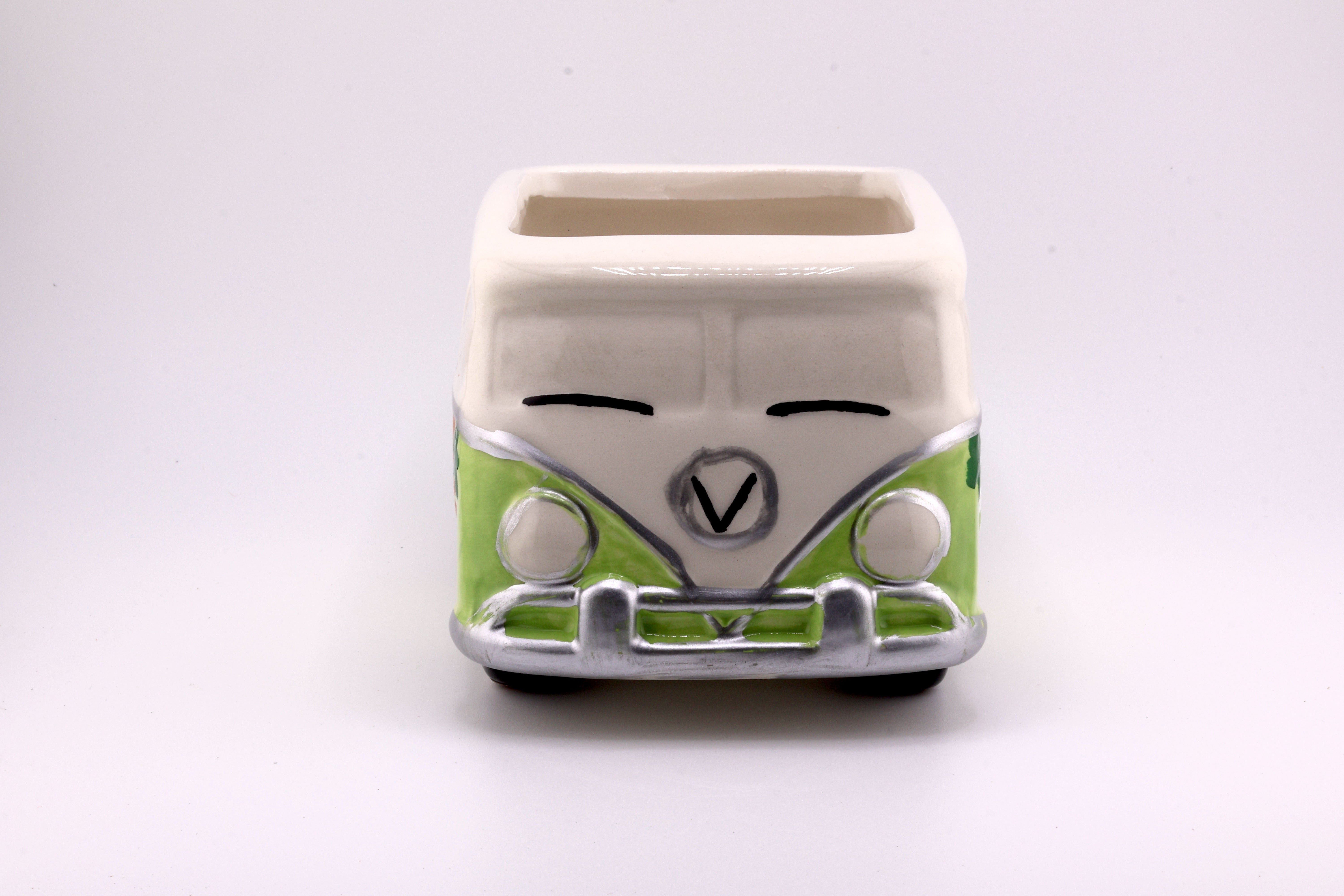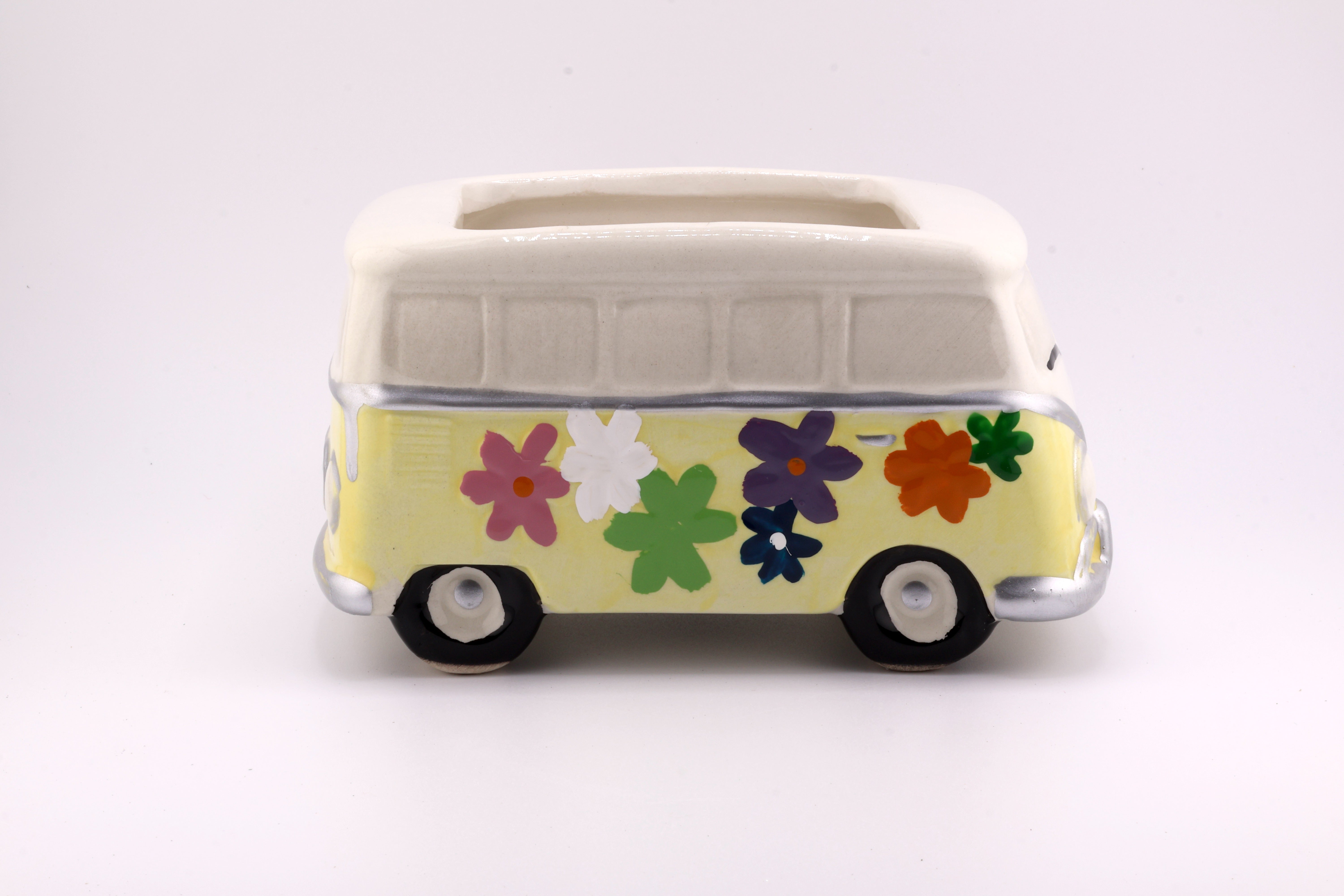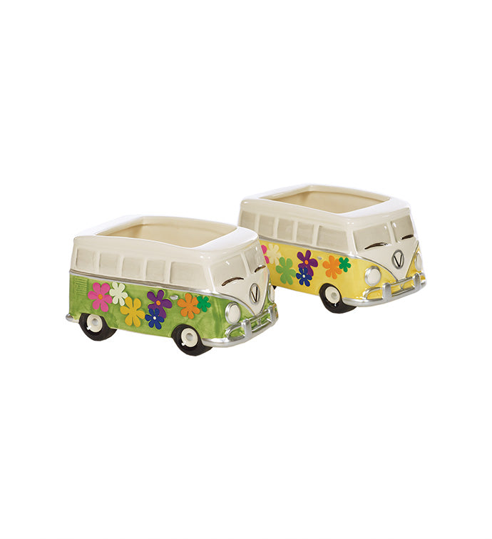 Add a touch of retro charm with the Hippy Van Planter. Crafted from ceramic, this compact planter (2.75" H x 3.25" W x 3.5" D) fits perfectly on desks or shelves, bringing a playful vibe to your space. Despite its no-drainage-hole design, it’s ideal for small succulents or air plants, making it easy to care for and perfect for brightening any room.
