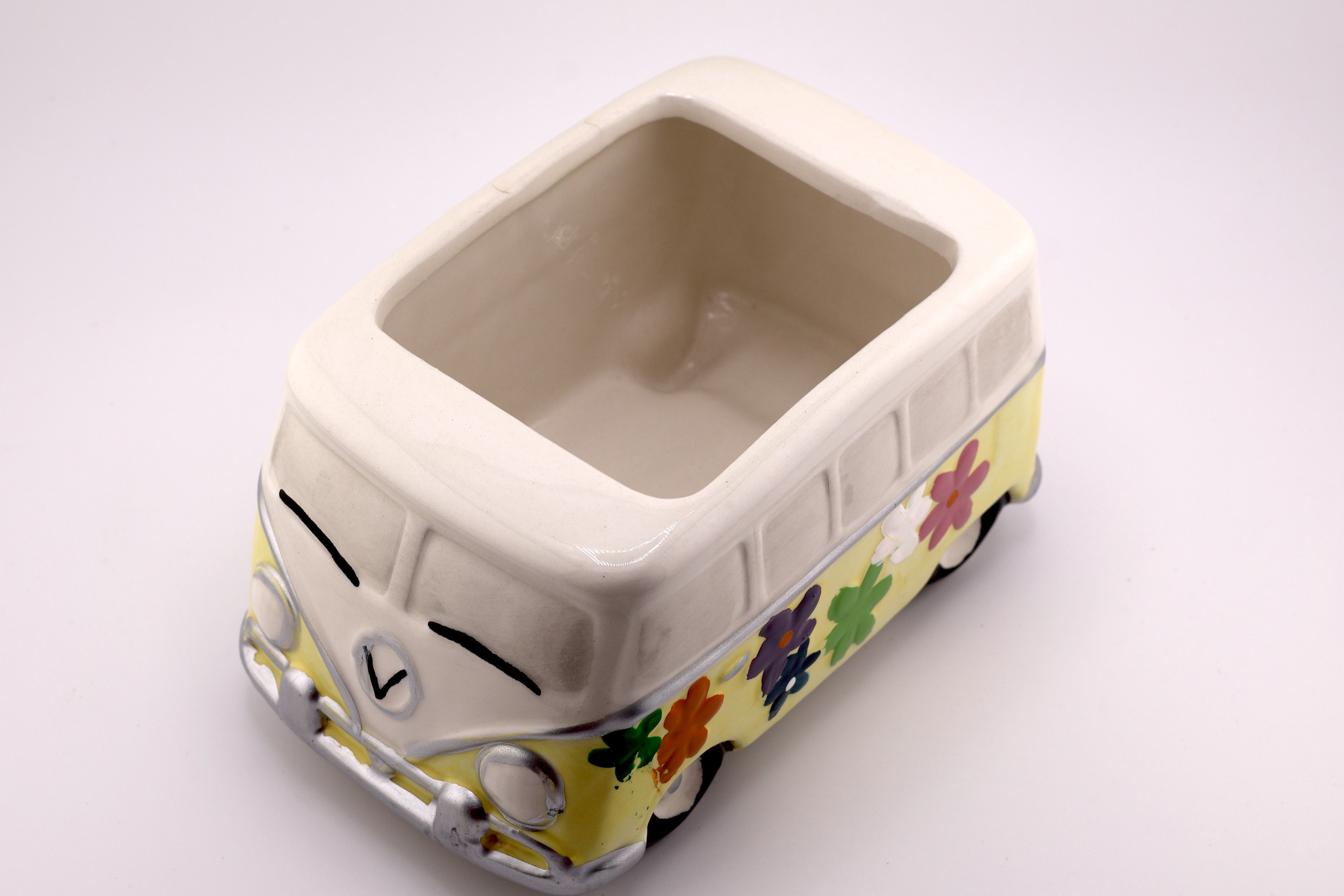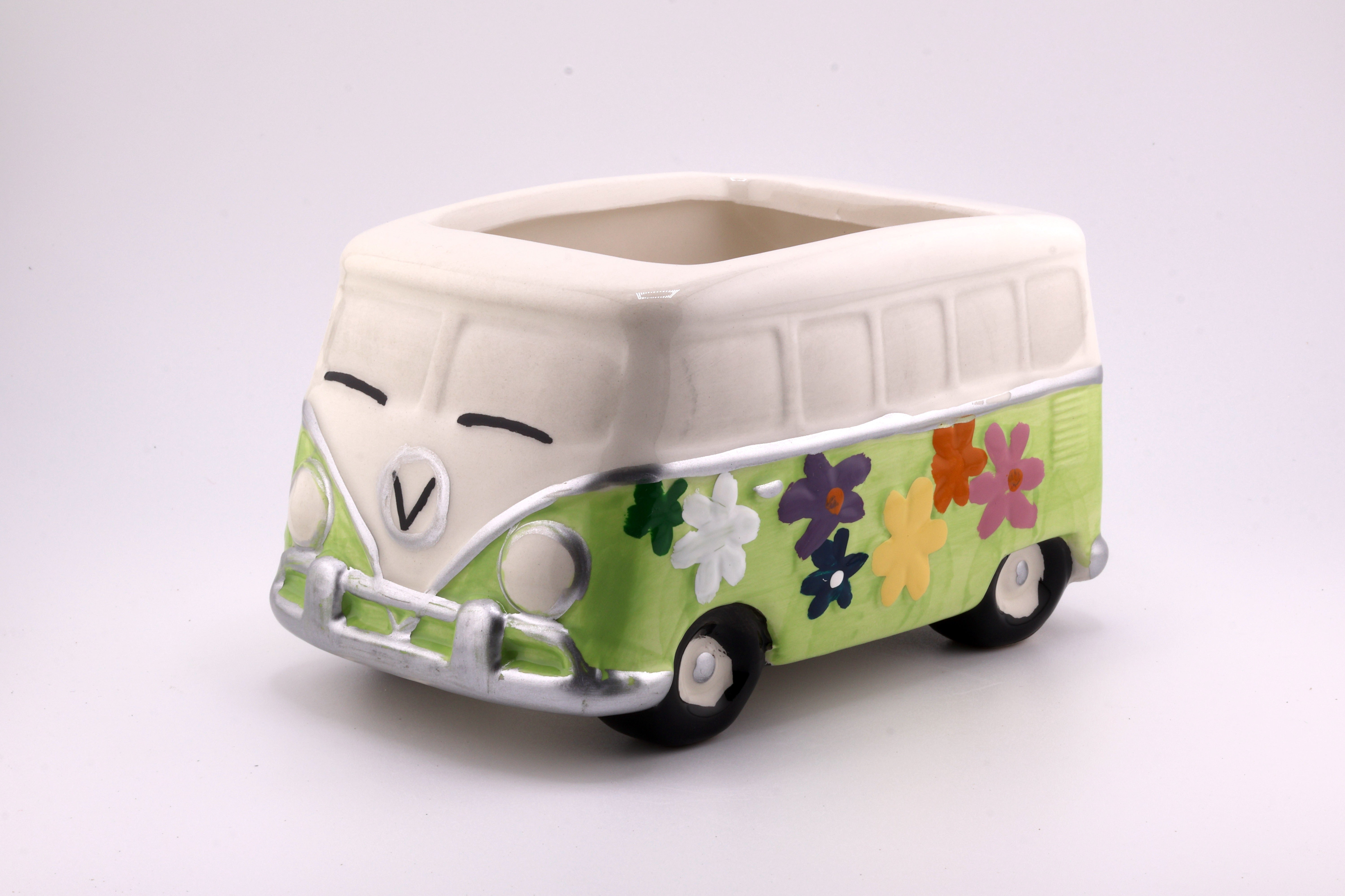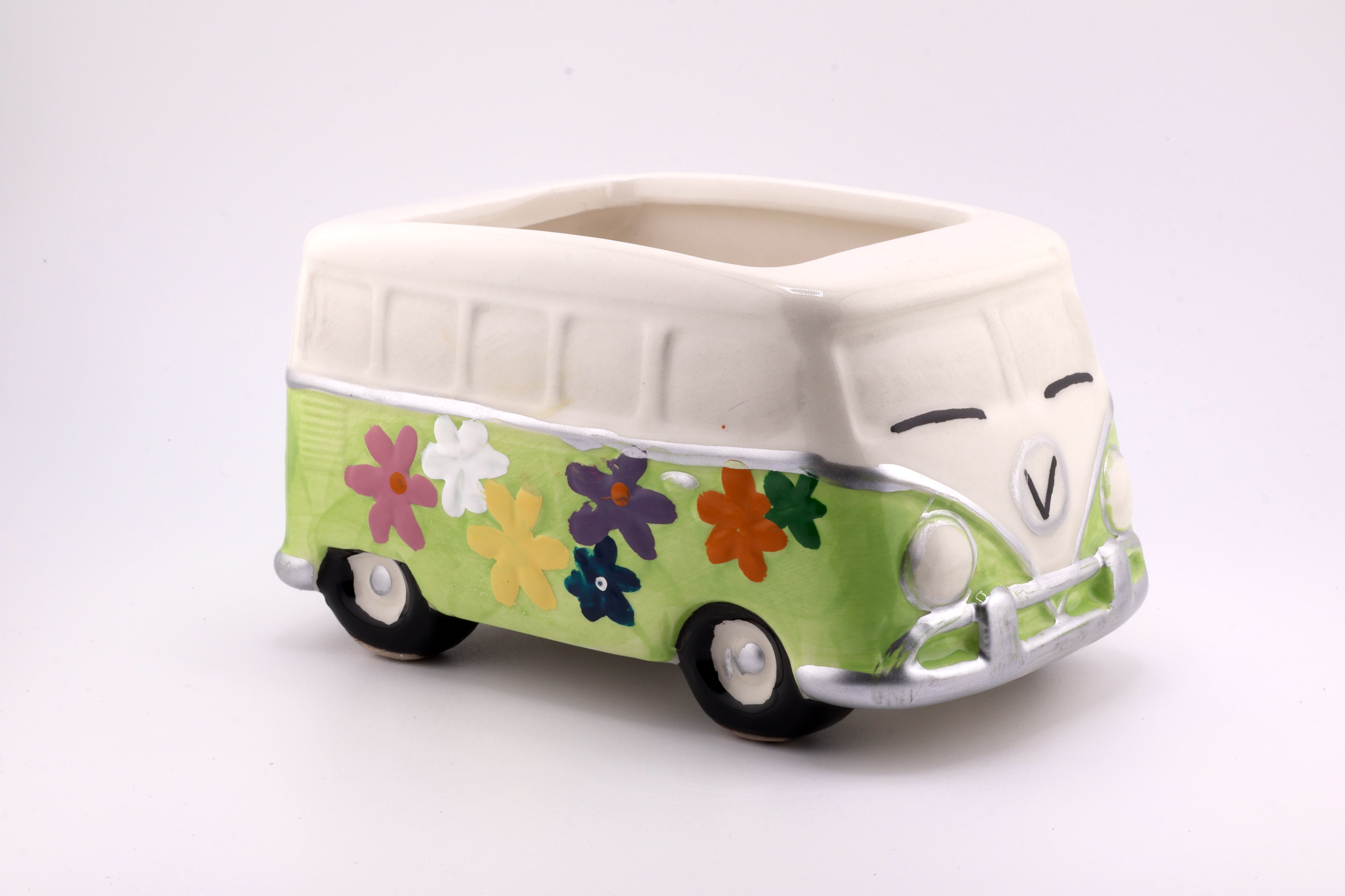 Add a touch of retro charm with the Hippy Van Planter. Crafted from ceramic, this compact planter (2.75" H x 3.25" W x 3.5" D) fits perfectly on desks or shelves, bringing a playful vibe to your space. Despite its no-drainage-hole design, it’s ideal for small succulents or air plants, making it easy to care for and perfect for brightening any room.