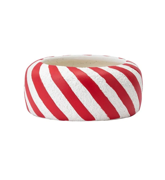 Add a festive pop of holiday cheer to your décor with the Small Peppermint Swirl Planter. Featuring bold red and white diagonal stripes with a textured finish, this charming planter brings the playful spirit of candy canes into your home. Perfect for seasonal plants, floral arrangements, or as a decorative catch-all.