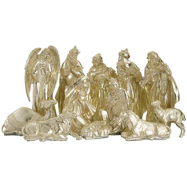 This Metallic Gold Nativity Set includes 12 beautifully detailed figures ranging from 3.5" to 19" tall, crafted from a durable blend of 55% resin and 45% stone. The elegant metallic gold finish highlights each piece’s intricate design, making it a striking and lasting centerpiece for your holiday décor. Combining sturdy materials with timeless craftsmanship, this set brings warmth and tradition to your seasonal celebrations with a refined, expert touch.