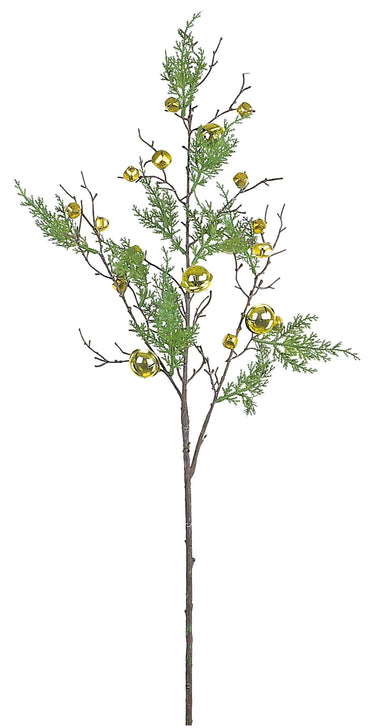 Elevate your seasonal décor with this stunning 40" cedar spray, a versatile piece that brings natural elegance to any space. Adorned with gleaming gold bells and rich green foliage, it captures the warmth of the holidays while maintaining year-round appeal. The generous length makes it perfect for mantels, doorways, or floral arrangements, while the combination of natural cedar and metallic accents adds sophisticated dimension. Whether you're designing a festive centerpiece or adding finishing touches to your home, this spray delivers professional-quality results with effortless charm.