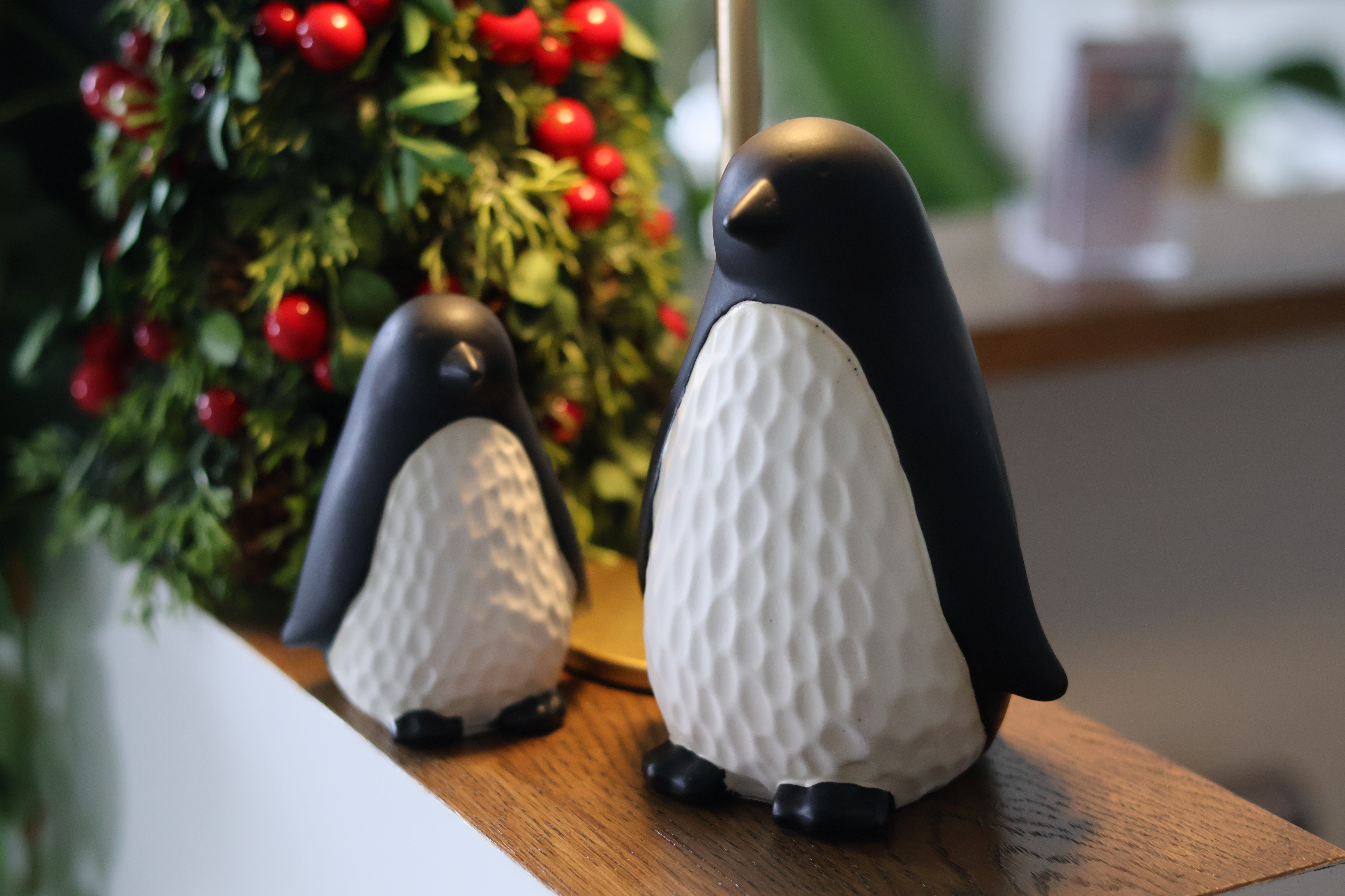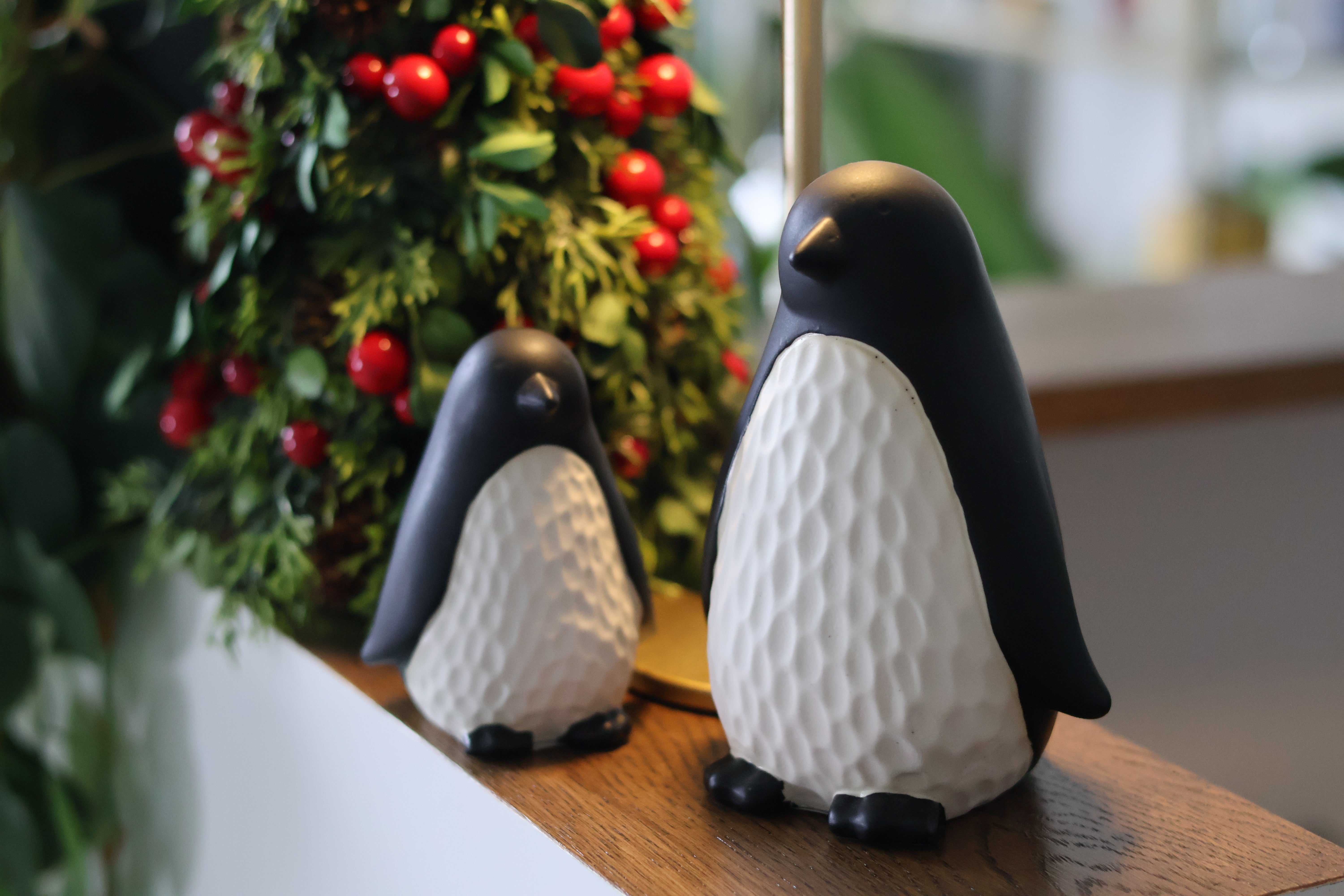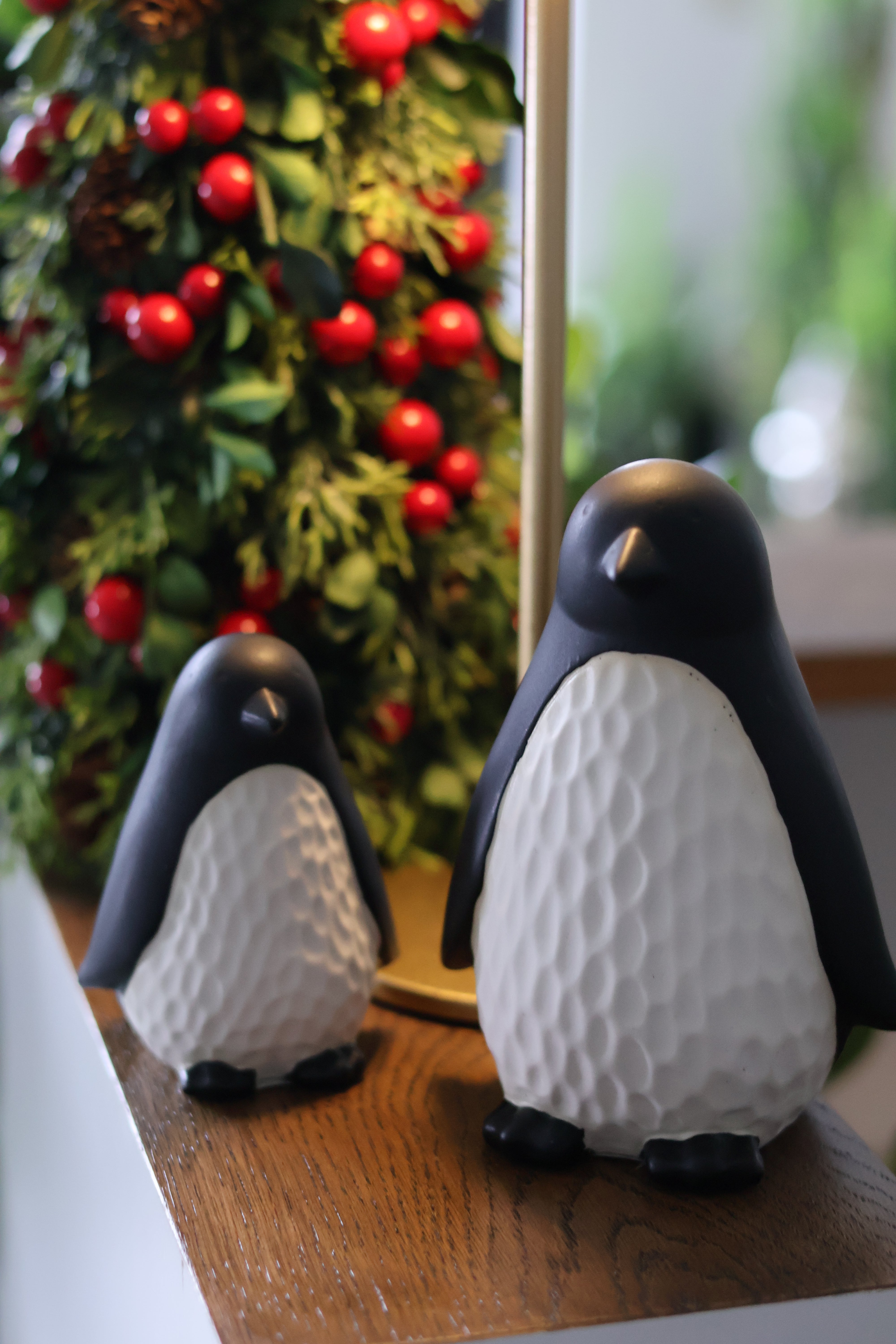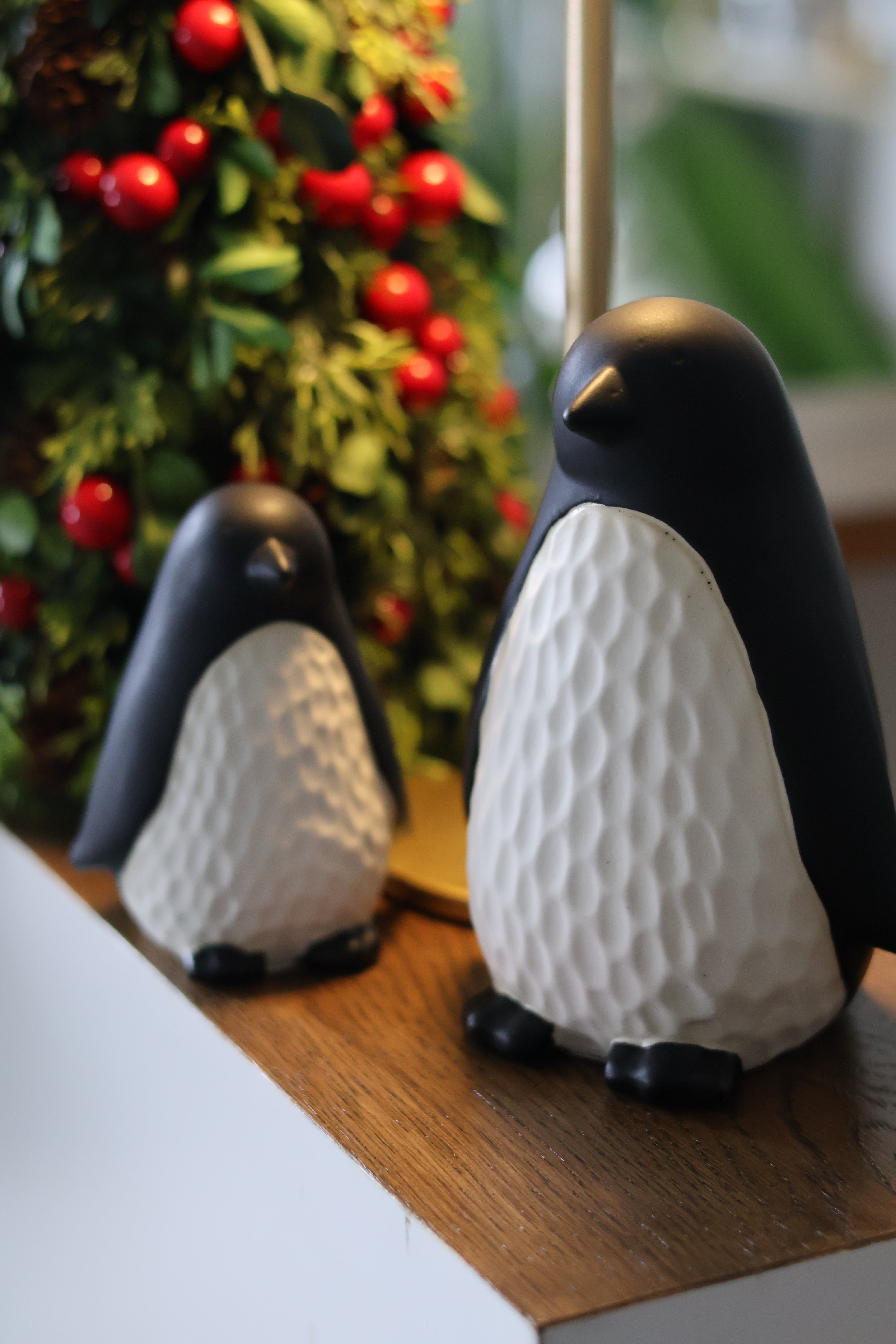 This charming ceramic penguin measures 5.75" high, 4" long, and 3.75" wide, making it an ideal decorative accent for your table, bookshelf, or desk. Its smooth finish and detailed design bring a touch of whimsy and sophistication to any space. Perfect for adding personality to your home or office, this large penguin combines durability with playful style effortlessly.
