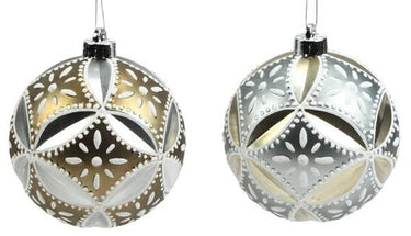 5" Floral Daisy Ball Ornament - Silver/Gold & Gold/Silver (Set of 2)