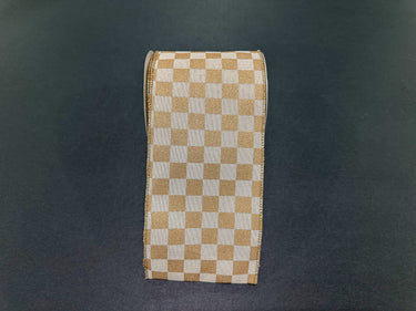 Checkered Pattern Ribbon, Cream/Gold, 4" x 10Y