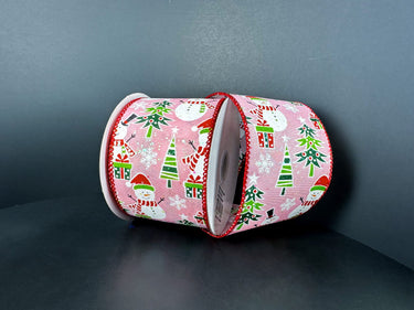 Frolicking Snowmen Ribbon, Pink, 2.5" x 10Y