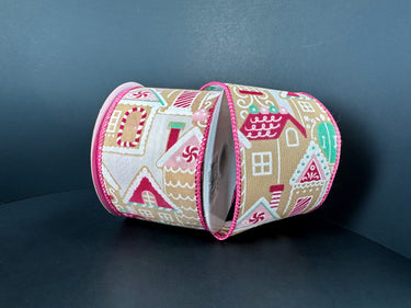 Gingerbread House Ribbon, Red & Pink, 2.5" x 10Y