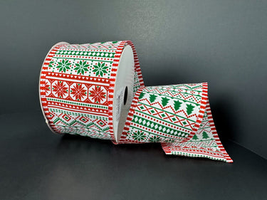 Red & Green Sweater Print Ribbon, 2.5" x 10Y