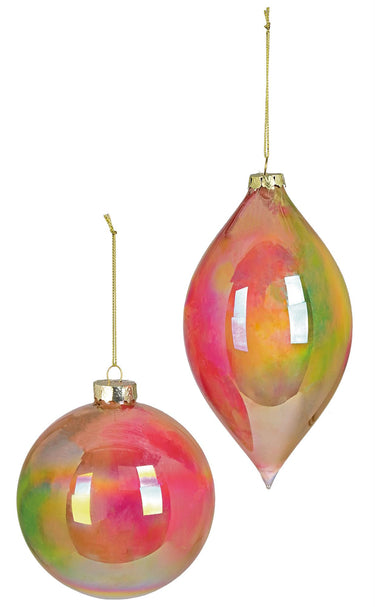 Elevate your holiday decor with this set of two Red Iridescent Shiny Cloud ornaments. Featuring both round and oval shapes, these ornaments reflect light with a captivating shimmer that adds warmth and charm to any festive setting. Their vibrant red hue and glossy finish bring a modern, radiant touch to your tree or holiday displays, making them perfect for creating a joyful and inviting atmosphere.