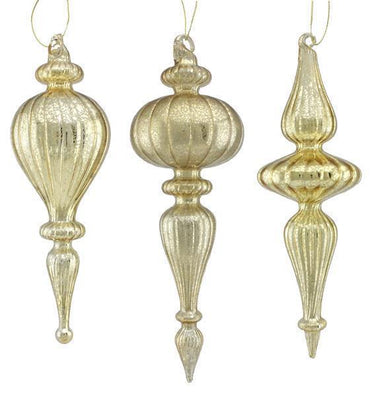 Shiny Gold Mercury Glass Finial Ornaments, 9.5" & 10" (Set of 3)