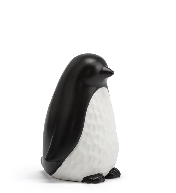 This small ceramic penguin stands 4" tall with dimensions of 3" long and 2.75" wide, making it the perfect festive accent for shelves, tables, or desks. Its charming design adds a subtle holiday spirit to any space while enhancing your décor with a touch of warmth and cheer. Durable and stylish, it’s an ideal piece to brighten your home or office during the season.